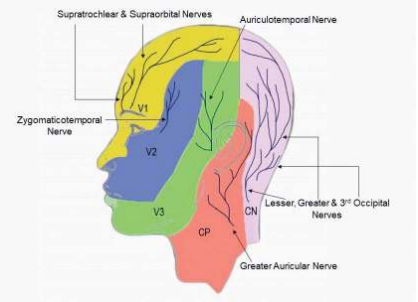 Thông tin chi tiết về vị trí, kỹ thuật tiêm và liều lượng sẽ được hiển thị ở đây. Các dây thần kinh được chia thành: Phần Trước, Phần Bên và Phần Sau.